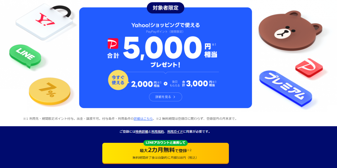 LYPプレミアム会員登録で合計5,000円相当のプレゼント特典
